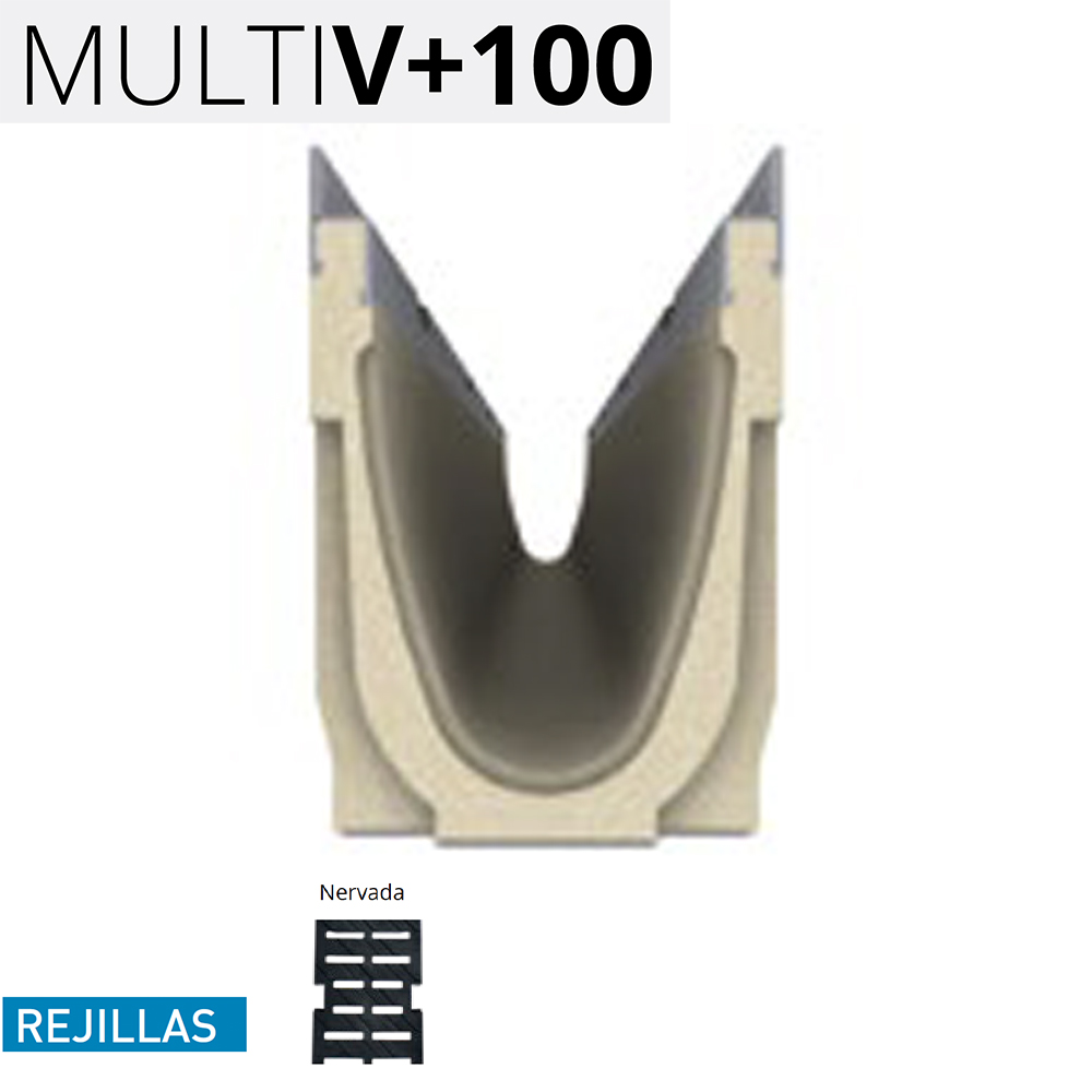 | Opciones | Rejilla inoxidable tránsito peatonal, Rejilla perforada tránsito peatonal, Rejilla tránsito vehicular pesado hasta 25 ton., Rejilla tránsito vehicular liviano hasta 12,5 ton., Rejilla tránsito peatonal, Altura 100 mm.con rejilla D400 (40 ton.), Altura 150 mm.con rejilla D400 (40 ton.), Altura 200 mm.con rejilla D400 (40 ton.), Altura 250 mm.con rejilla D400 (40 ton.), Altura 300 mm.con rejilla D400 (40 ton.) |